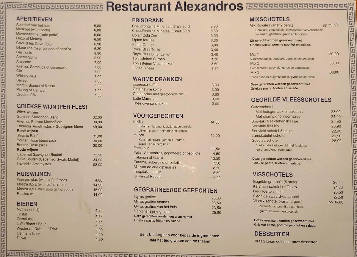 Discover "Restaurant Alexandros," a hidden gem located on Oude Siemerstraat in Bilzen-Hoeselt, Belgium. This charming eatery is celebrated for its delectable dishes and warm, welcoming atmosphere, as noted by delighted customers. From generous portions of mixed platters to perfectly cooked seafood, each dish showcases a commitment to quality. Reviews highlight the friendliness of the staff, creating a sense of genuine hospitality. Although some felt the prices were slightly high, the culinary experience, including the rich flavors of classic Greek cuisine, makes it a destination worth visiting. Dive into a memorable dining experience at Restaurant Alexandros!